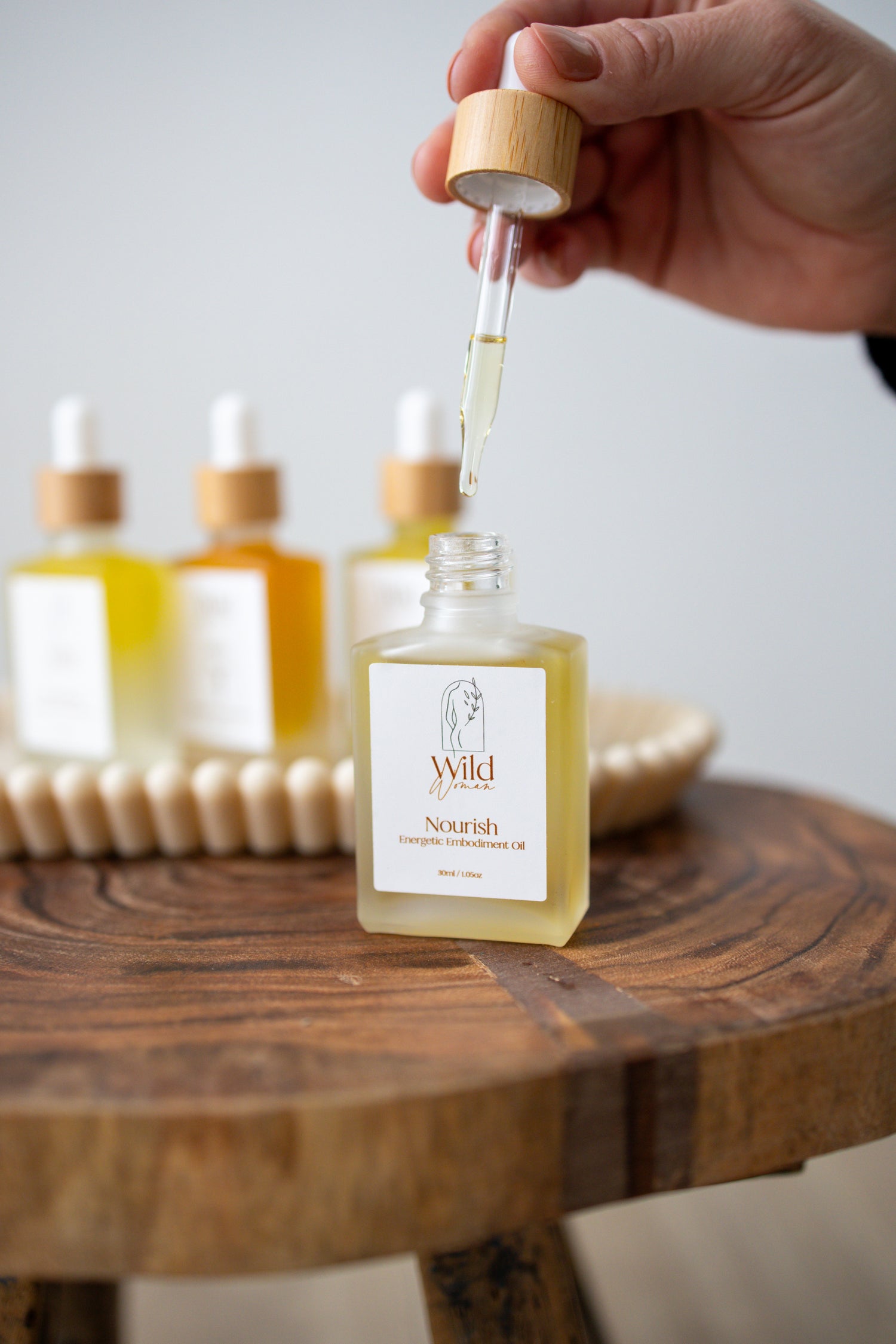 Our Energetic Embodiment Oils are hand-blended with high-quality, natural ingredients and infused with nature’s sacred energy. Each blend is crafted to align mind, body, and spirit, supporting emotional well-being and helping you reconnect with your inner wild woman. These oils are designed to enhance your personal rituals and promote self-love.